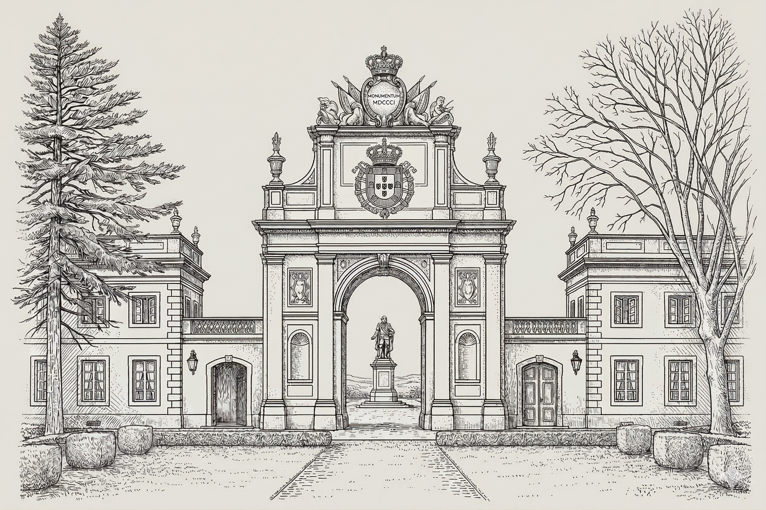 There is a certain stillness and romance to this corner of Sintra that is hard to put into words. We chose this particular setting because it feels less like a hotel and more like a step back into a golden era. From the grand archway that frames the valley to the soft light that hits the staircase at dusk, it is a place truly built for gathering and celebration.